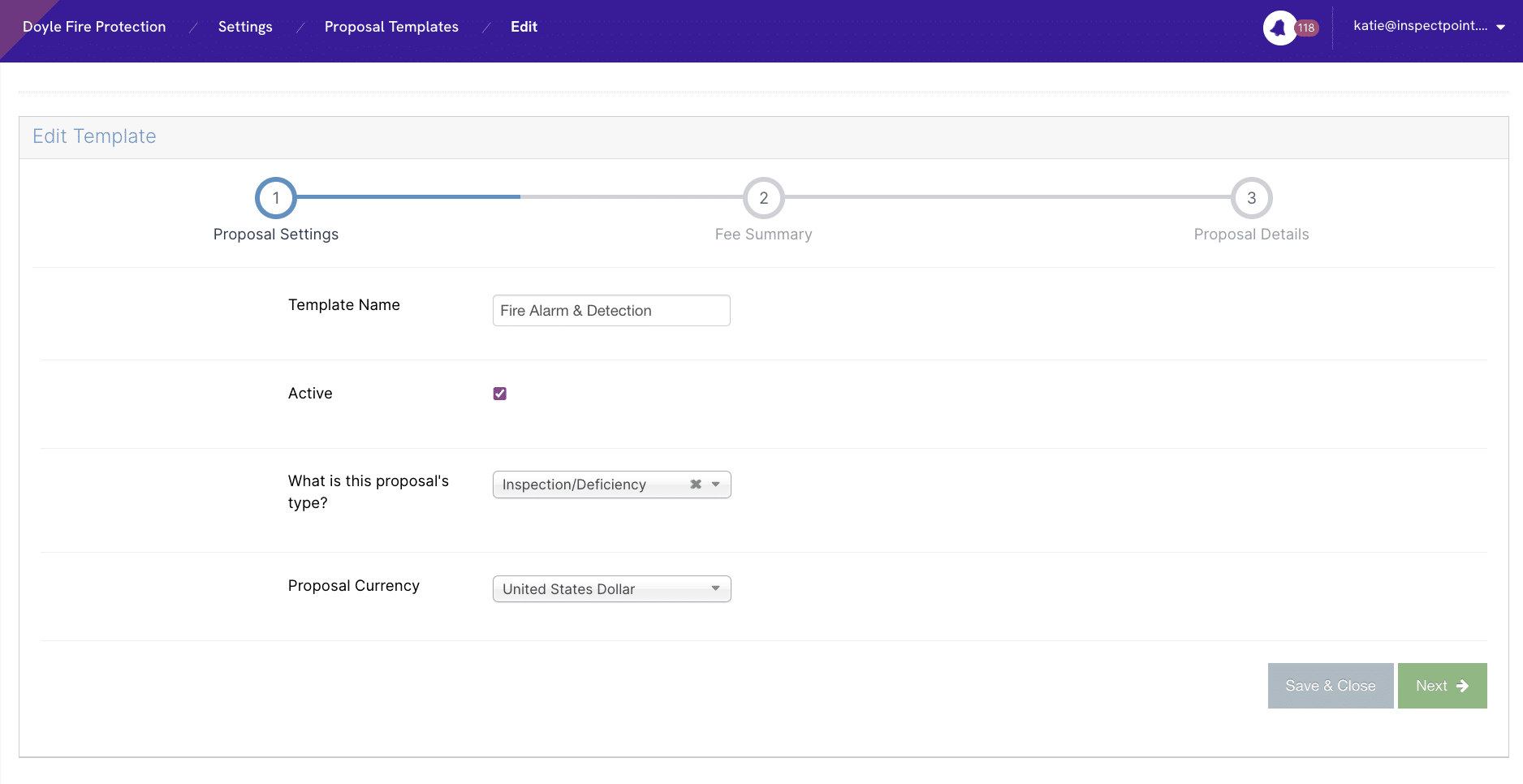 Yes! Proposals can be assigned to individual members of your sales team. In addition, users can access a detailed status timeline showing if the customer has received, viewed, or accepted the proposal. Sales users can also leverage Inspect Point’s proposal reminder feature, which saves time by automating email follow-up on pending proposals.