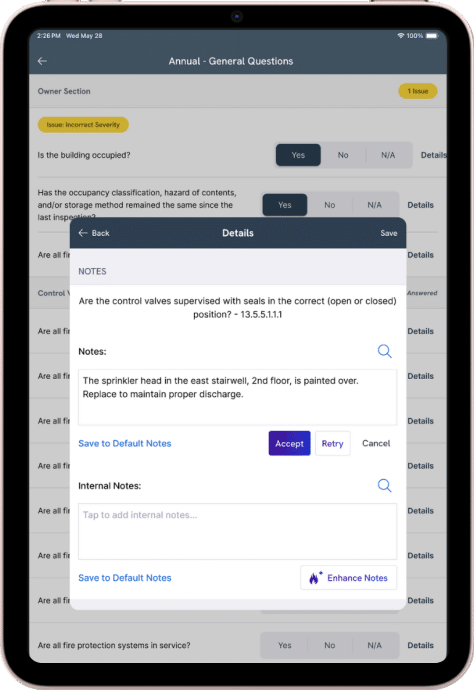 Inspection Assistant learns from your operations and each building’s history to pre-populate fields, propose note starters, and carry forward verified device data. Techs spend less time typing and more time inspecting — while your reports stay accurate, consistent, and aligned to your internal standards.
