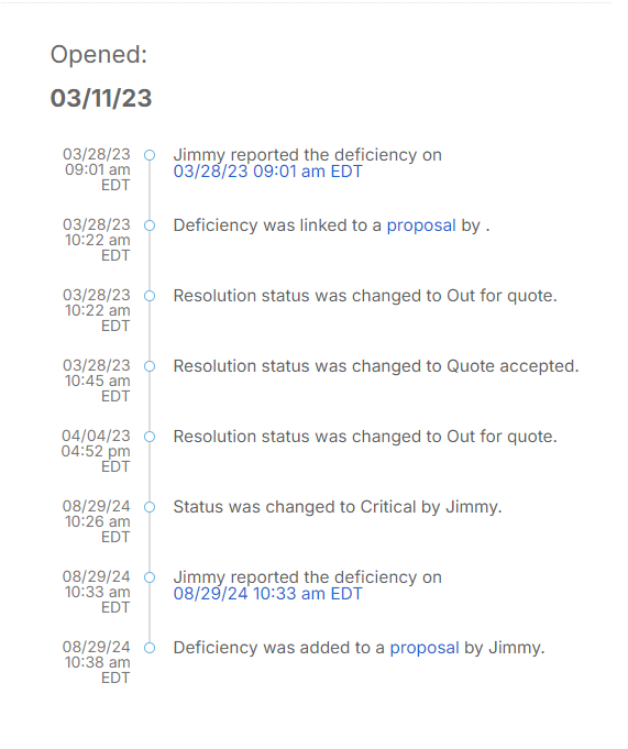 What does a good deficiency audit trail look like? To be effective, you need a record of every activity your business takes to resolve a deficiency. From the initial identification to sending a quote for repairs to follow-ups. This can be difficult—if not impossible—to accurately accomplish with traditional pen and paper methods or even with general field service management software platforms.