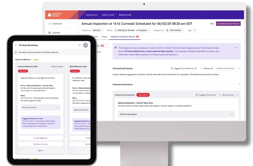 Inspection Assistant (IA) was built to change that rhythm. It’s an AI co-pilot that lives inside Inspect Point, quietly checking entries in the field, suggesting pre-filled device data and note starters, flagging missing evidence, and surfacing only the exceptions the office needs to review. The result is simple and measurable: techs leave confident, offices approve faster, and owners get cleaner, AHJ-ready reports with fewer revisits. This post answers the questions we hear most from prospects — and uses real, tactical guidance so you can pilot IA in your operations and see early wins fast.